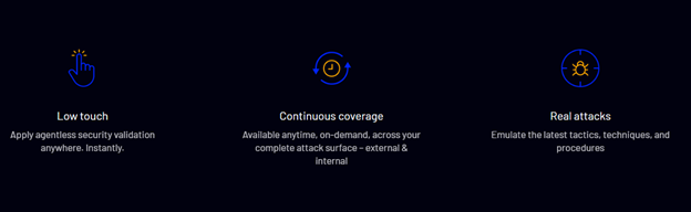 - Xác định rủi ro thực sự: Bằng cách mô phỏng các tổ chức tấn công trong thế giới thực, cho phép phát hiện ra bề mặt tấn công có thể khai thác của họ và phát hiện ra các lỗ hổng bảo mật có thể bị xâm phạm