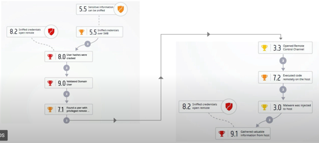 Các bước mô phỏng tấn công sẽ được lưu lại và thể hiện dưới dạng biểu đồ từng bước tấn công, cho phép các pentester quan sát được chu trình và xác minh được root-cause của các cuộc tấn công đó.