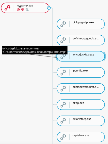 Hầu hết các quy trình mà Emotet chạy đều có tên ngẫu nhiên và là quy trình con của quy trình regsvr32 thực thi Emotet: