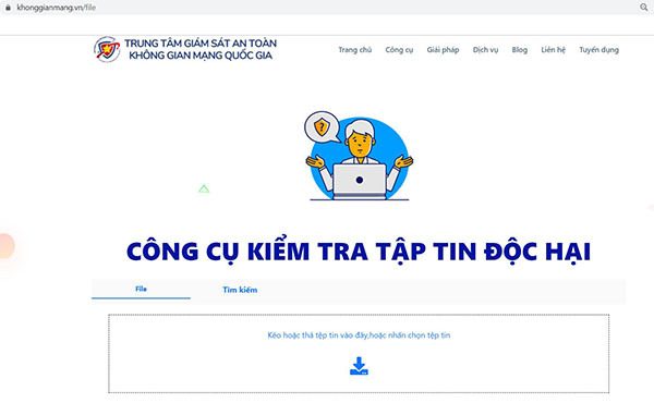 Công cụ “Kiểm tra tập tin độc hại” mới được NCSC cung cấp trên trang Khonggianmang.vn, cho phép người dùng kiểm tra mức độ an toàn của những tập tin đáng ngờ nhận được từ email, mạng xã hội hay từ các thiết bị ngoại vi như USB.
