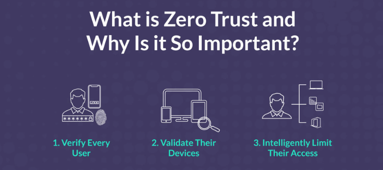 Zero trust một khái niệm về an ninh mạng, là một triết lý được mặc định sẵn rằng mọi truy cập phải được kiểm tra kỹ lưỡng cho dù đó là người ở trong hay ngoài mạng. Mô hình bảo mật zero trust hoạt động dựa trên sự giả định về tất cả các mối đe dọa đều có thể xảy ra cho dù đó là nguồn truy cập đáng tin cậy.