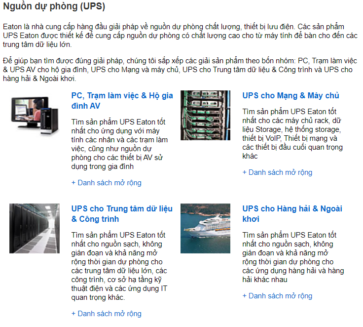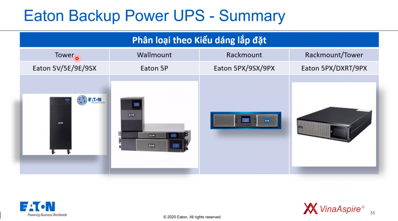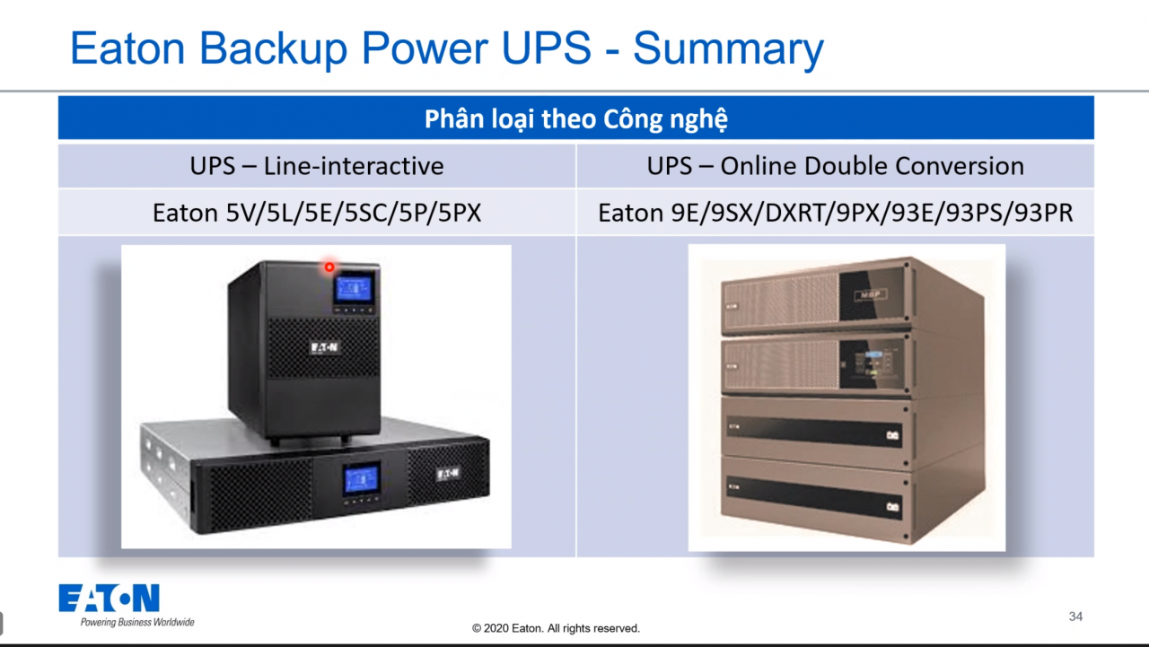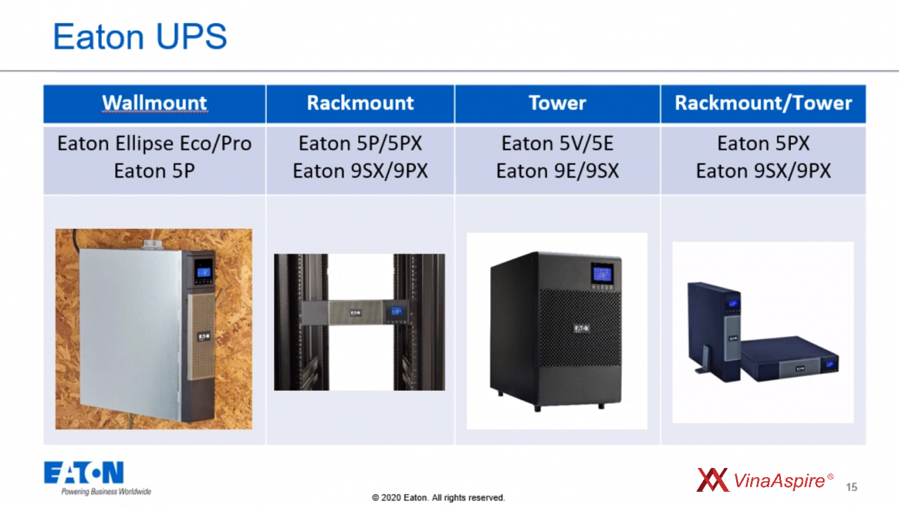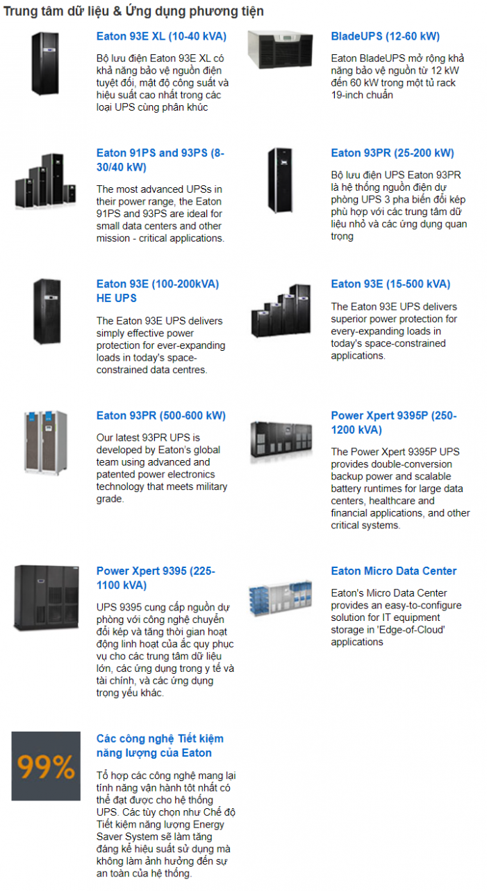 Eaton là nhà cung cấp trang thiết bị đóng cắt, bảo vệ, UPS, phân phối điện trung áp, hạ áp nổi tiếng với hơn 100 năm kinh nghiệm, cùng với sức mạnh từ sự hợp nhất các hãng tên tuổi trong lĩnh vực này như Cutler-Hammer, Moeller, Powerware …