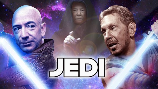 Amazon, Microsoft, IBM, Oracle và Google bắt đầu tham gia đấu thầu JEDI từ hơn một năm trước. Đến tháng 10 năm ngoái thì Google rút lui do việc làm ăn với quân đội gây mẫu thuẫn với các nguyên tắc của tập đoàn, nhất là việc ứng dụng trí tuệ nhân tạo trên vũ khí.