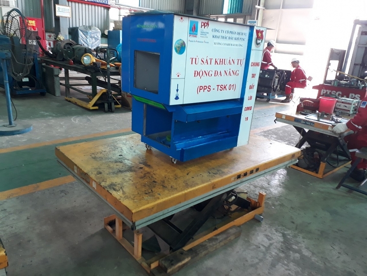 Xác định mục tiêu, được sự ủng hộ của Ban lãnh đạo đơn vị, các đoàn viên thanh niên trong thời gian một tuần sau cách ly giãn cách xã hội đã hoàn thành sơ bộ bản thiết kế thiết bị sát khuẩn tự động đa năng (thiết bị thiết kế theo dạng tủ di động). Sau 2 tuần, từ ngày 06/4-20/4/2020, tủ sát khuẩn tự động đa năng PPS – TSK 01 đã được hoàn thành cơ bản việc chế tạo. Sau khi chế tạo xong, để đảm bảo các yếu tố an toàn và các tiêu chí sát khuẩn, tủ sát khuẩn PPS – TSK 01 đã được Trung tâm công nghệ sinh học TP Hồ Chí Minh đánh giá giải pháp sát khuẩn, sau đó tiếp tục được Đại học Y Dược và Viện Pasteur TP Hồ Chí Minh kiểm nghiệm. Kết quả, thiết bị đã được cấp giấy chứng nhận đảm bảo an toàn sức khỏe và có khả năng sát khuẩn lên đến 99%.