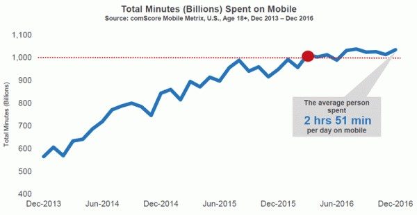 Kèm theo đó là số lượng người dùng di động (smartphone) tăng lên chóng mặt. Cụ thể theo những báo cáo mới đây mà các nhà khoa học đã thống kê thì thời gian dành cho smartphone trung bình qua khảo sát hàng tỉ người thì rơi vào khoảng 3 tiếng một ngày.
