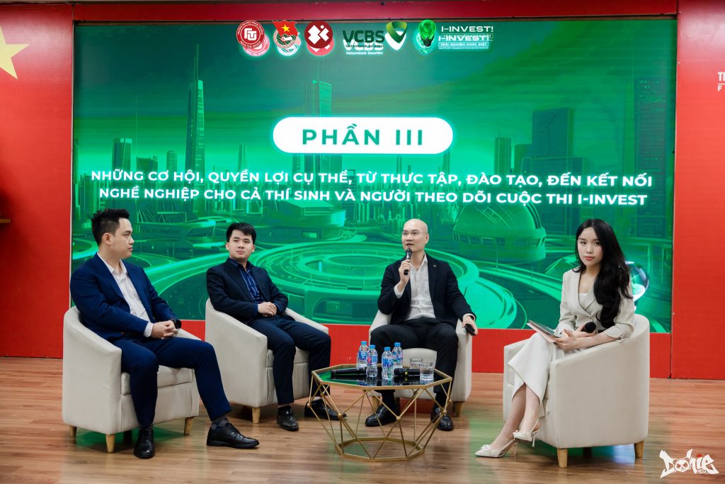 Talkshow “FIN-ENTRY: TÂM ĐIỂM NGHỀ TÀI – KHỞI NGUỒN TƯƠNG LAI” tại buổi lễ với sự góp mặt của các diễn giả từ Công ty TNHH Chứng khoán Ngân hàng Thương mại Cổ phần Ngoại thương Việt Nam (VCBS), CTCP Chứng khoán Thiên Việt và CTCP Tư vấn và Đào tạo kNowHow đã chia sẻ về những quyền lợi thiết thực như cơ hội thực tập và chương trình đào tạo chuyên sâu, đồng thời làm rõ các tiêu chí tuyển dụng giúp sinh viên định vị bản thân và chủ động nắm bắt cơ hội phát triển trong lĩnh vực tài chính. Phiên tọa đàm ngắn đã phân tích những điểm mạnh cần phát huy, đồng thời chỉ ra các kỹ năng cần cải thiện để sinh viên đáp ứng tiêu chuẩn tuyển dụng và tự tin nắm bắt cơ hội nghề nghiệp.