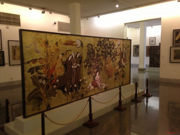 Tác phẩm tranh sơn mài khổ lớn của danh họa Nguyễn Gia Trí trưng bày tại Bảo tàng Mỹ Thuật Việt Nam. Ảnh Nguyễn Hương