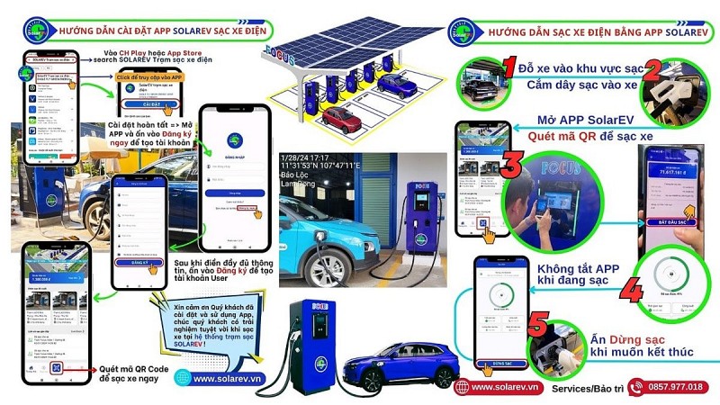 Công ty CP Năng lượng Focus Solar (www.focussolar.vn) và Công ty CP Trạm sạc xe điện SolarEV (www.solarev.vn) đã và đang phát triển hệ thống trạm sạc SolarEV – trạm sạc nhanh đáp ứng chuẩn sạc cho mọi dòng ô tô điện hiện nay. Song song với dự án lắp đặt nhiều trạm sạc cho hãng Taxi Lado tại Lâm Đồng và các trạm sạc công cộng tại TP.HCM, thì 2 đơn vị này cũng đã lắp thí điểm mô hình trạm sạc xe điện kết hợp với dịch vụ quán cafe, trạm dừng nghỉ trên cao tốc – quốc lộ, nhằm mang đến nhiều tiện hơn cho người dùng xe điện đi đường dài.