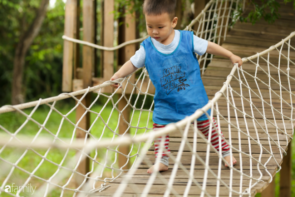 Tôi nhớ mãi một cô bé tóc xoăn bé xíu, khi đang trèo thang dây lên nhà cây thì bị trượt chân ngoắc vào dây cứ thế lơ lửng và khóc òa lên, nhưng nhất định không kêu ai tới cứu. Cô giáo trông thấy vậy cũng chỉ đứng lại gần khích lệ và hướng dẫn: “Con làm được mà, chỉ cần đưa cái chân phải ngoắc lên xíu là được!”, khoảng 5 phút loay hoay trong nước mắt, cuối cùng cô bé cũng làm được. Cũng là một người mẹ, tôi thấy đó thực sự là 5 phút dài như thế kỷ, khi mà chỉ cần lao đến, nhấc em bé lên là xử lý xong vấn đề, nhưng cách cô giáo bình thản, chờ đợi cô bé tự xoay xở với thái độ đầy tin tưởng khiến tôi thực sự xúc động. Không phải cô giáo mầm non nào cũng có thể và được “cho phép” xử lý một “sự cố” theo cách như vậy.