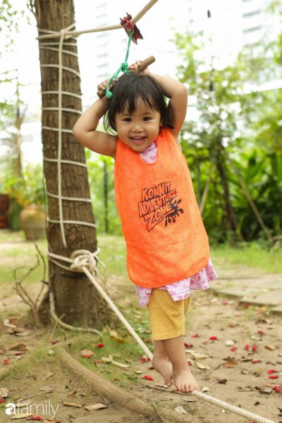 Tôi nhớ mãi một cô bé tóc xoăn bé xíu, khi đang trèo thang dây lên nhà cây thì bị trượt chân ngoắc vào dây cứ thế lơ lửng và khóc òa lên, nhưng nhất định không kêu ai tới cứu. Cô giáo trông thấy vậy cũng chỉ đứng lại gần khích lệ và hướng dẫn: “Con làm được mà, chỉ cần đưa cái chân phải ngoắc lên xíu là được!”, khoảng 5 phút loay hoay trong nước mắt, cuối cùng cô bé cũng làm được. Cũng là một người mẹ, tôi thấy đó thực sự là 5 phút dài như thế kỷ, khi mà chỉ cần lao đến, nhấc em bé lên là xử lý xong vấn đề, nhưng cách cô giáo bình thản, chờ đợi cô bé tự xoay xở với thái độ đầy tin tưởng khiến tôi thực sự xúc động. Không phải cô giáo mầm non nào cũng có thể và được “cho phép” xử lý một “sự cố” theo cách như vậy.