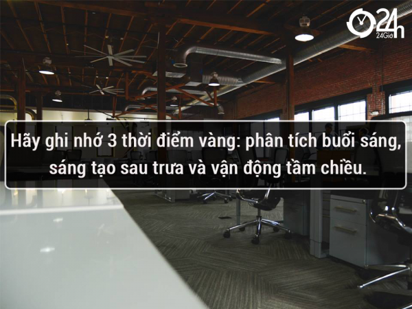Hãy ghi nhớ ba thời điểm vàng : phân tích buổi sáng, sáng tạo sau trưa và vận động tầm chiều.