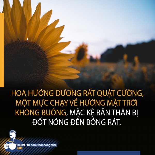 2. Hoa hướng dương rất quật cường, một mực chạy về hướng mặt trời không buông, mặc kệ bản thân bị đốt nóng đến bỏng rát.