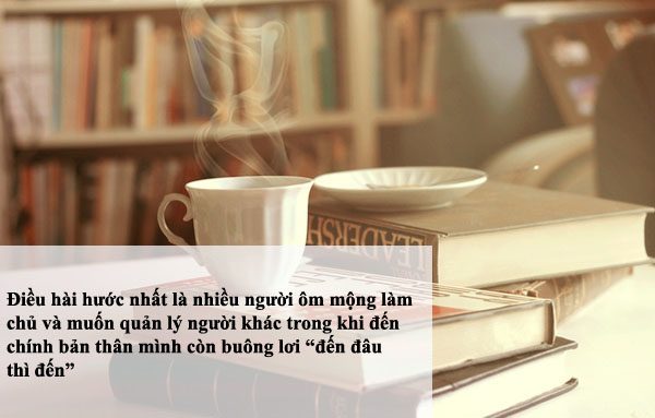 Tôi biết có những người trẻ một tháng làm được 5 đồng nhưng ăn đến 10 đồng, hoàn toàn không có khái niệm về quản lí tài chính cá nhân, đến cuối tháng chạy vạy đủ đường thiếu điều tìm đến những chỗ cho vay nặng lãi. Hay một số người khác thì đụng đâu chửi đó, làm vài ba việc cỏn con đã than thở như thể trời sập đến nơi. Hoặc một số người làm việc hoàn toàn dựa vào cảm xúc, vui thì làm, chán thì đóng laptop tắt điện thoại mặc kệ bao nhiêu người đang sốt sắng tìm mình. Điều hài hước nhất là tất cả những người trẻ này đều ôm mộng làm chủ, có được một cơ ngơi riêng và muốn quản lí người khác, trong khi đến chính bản thân mình còn buông lơi “đến đâu thì đến”.