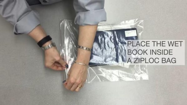Lưu ý: Nếu bạn không có thời gian để giải cứu cuốn sách ngay lúc nó bị ướt, hãy nhanh chóng đặt cuốn sách vào túi đựng thực phẩm, bịt kín miệng túi và đặt lên ngăn đá của tủ lạnh để chờ đến lúc có thời gian làm khô cuốn sách.