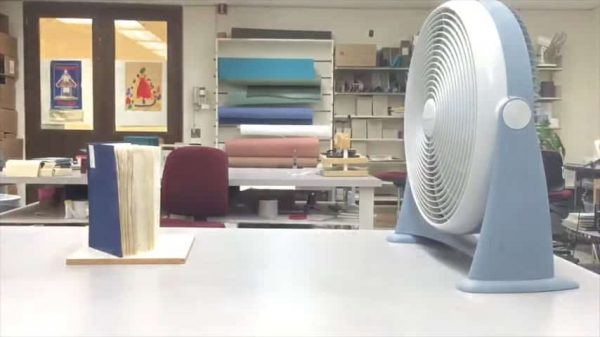 – Bước 5: Xòe cuốn sách, sau đó mở quạt ở tốc độ thấp để thổi khô cuốn sách.