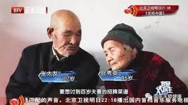 Ở tỉnh Sơn Đông, Trung Quốc có “cặp vợ chồng 100 tuổi” vô cùng nổi tiếng là: Cụ ông Trương Thái Hữu 107 tuổi, cụ bà Quan Tú Anh 95 tuổi.
