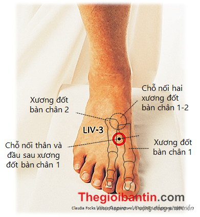 Phương pháp đơn giản nhất, đó là sau khi tức giận, hãy massage vào huyệt Thái xung ở dưới lòng bàn chân (sau khe giữa ngón chân 1 và 2, đo lên 1,5 thốn, huyệt ở chỗ lõm tạo nên bởi 2 đầu xương ngón chân 1 và 2. Hoặc sờ dọc theo khoảng gian đốt xương bàn chân 1, tìm xác định góc tạo nên bởi 2 đầu xương bàn chân 1 và 2, lấy huyệt ở góc này), có thể giúp khí gan bốc lên được phân tán xuống dưới, lúc này huyệt vị này sẽ rất đau, cần massage lại nhiều lần, cho đến khi hết đau mới thôi.