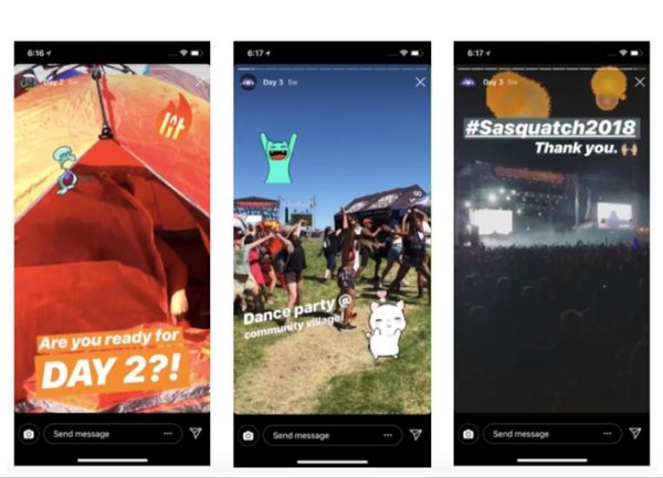 Tại Sasquatch! Music Festival 2018, BTC đã tạo các video ngắn từ những màn trình diễn và hoạt động của người tham dự và đăng trên Instagram Story, thu hút được rất nhiều lượt tương tác.