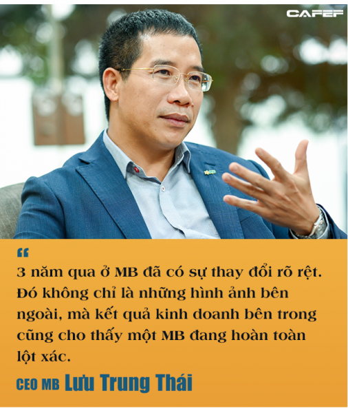 Có được kết quả này, theo ông Lưu Trung Thái, Phó chủ tịch Hội đồng quản trị kiêm Tổng giám đốc, là MB đã đổi mới mạnh mẽ trong 3 năm qua và kiên định thực hiện chiến lược đã vạch ra từ 2017, bao gồm 5 mục tiêu là đổi mới, hợp tác, hiện đại hoá và phát triển bền vững, dựa trên 3 trụ cột chính đó là ngân hàng cộng đồng, ngân hàng chuyên nghiệp theo ngành và ngân hàng số; cùng 2 nền tảng là quản trị rủi ro vượt trội và năng lực thực thi nhanh.