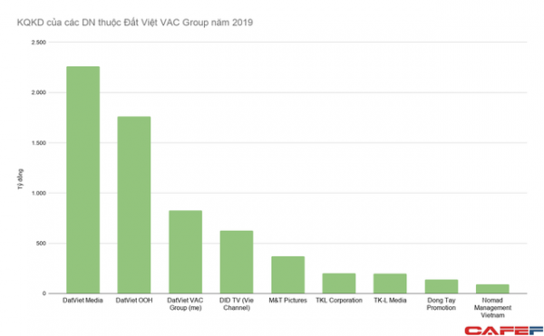 Ngược lại, mô hình quảng cáo ngoài trời tưởng chừng đã cũ nhưng 2019 DatViet OOH bất ngờ tăng doanh thu gấp đôi lên gần 200 tỷ đồng. Đây cũng là đơn vị có lợi nhuận của Đất Việt VAC dù không nhiều.