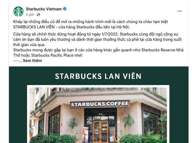 “Khép lại những điều cũ để mở ra những hành trình mới là cách chúng ta chào tạm biệt Startbucks Lan Viên – cửa hàng Starbucks đầu tiên tại Hà Nội. Cửa hàng sẽ chính thức dừng hoạt động từ ngày 1/7/2022.