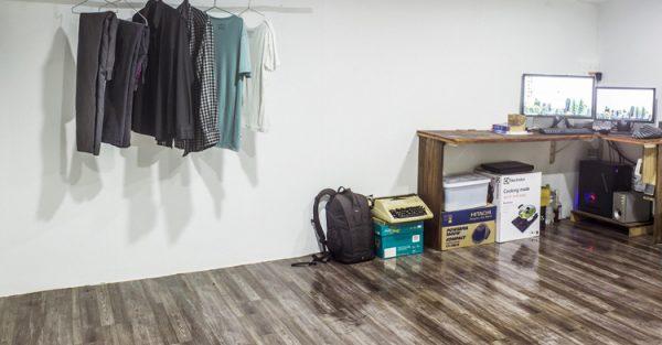 Gác xép nơi làm việc của Bắc chỉ treo vài bộ quần áo đi làm và bộ máy tính làm việc. Ảnh: H.N. |
