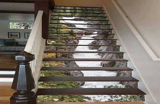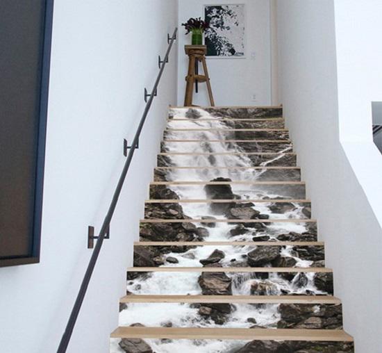 Mang cả thiên nhiên vào căn nhà của bạn với mẫu cầu thang 3D thác nước thơ mộng.