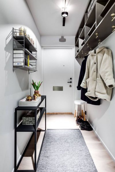 Vì diện tích khiêm tốn nên mọi góc nhỏ của căn hộ đều được tận dụng tối đa. Bên dưới giá để đồ chủ nhà còn tạo những móc treo quần áo thuận tiện.