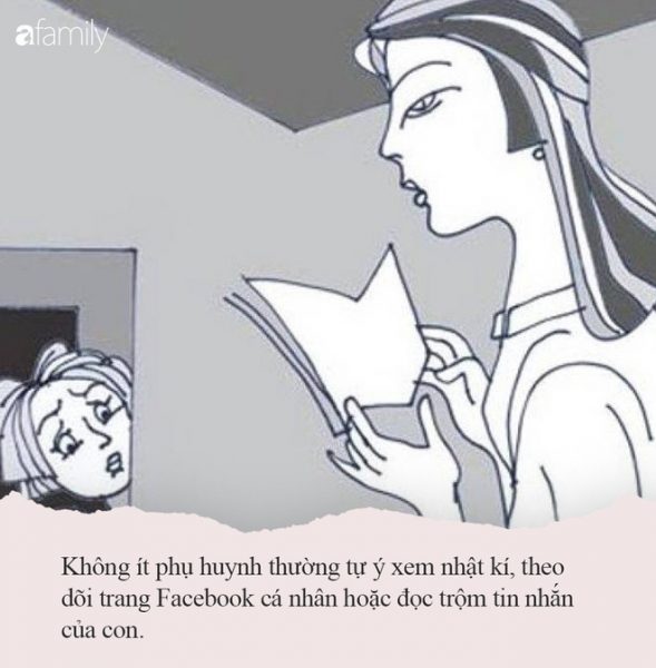 Giữa bố mẹ và con cái cũng cần có những ranh giới cá nhân. Không ít phụ huynh thường tự ý xem nhật kí, theo dõi trang Facebook cá nhân, đọc trộm tin nhắn khiến con cảm thấy thiếu tôn trọng và bị xâm phạm quyền riêng tư.