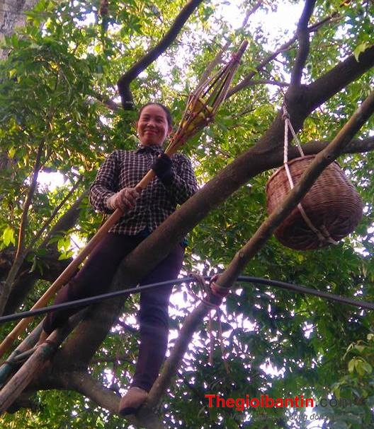 Để hái được những quả thị trên những cây cao từ 20 đến 40m, người dân phải sử dụng đến cây nứa dài tới 7m. Công việc thu hái thị đòi hỏi phải có sức khỏe tốt và đôi tay khéo léo.