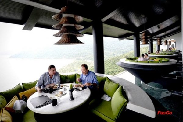 Một nhà hàng nằm trên sườn đồi có view đẹp đến nao lòng. Cách mặt nước biển 100m với bàn ăn tạo hình là chiếc nón khổng lồ treo ngược. Món ăn ở đây cũng đa dạng từ món ăn Việt Nam đến những món ăn nổi tiếng Châu Á. Được làm từ những nguyên liệu chất lượng và được chế biến công phu, trang trí tinh tế.