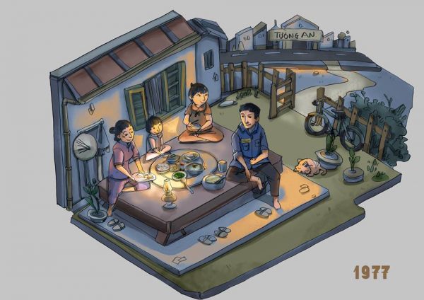 Bộ tranh sáng tạo “Bữa cơm nhà qua các thời kỳ” của dầu ăn Tường An kỷ niệm 40 năm thành lập
