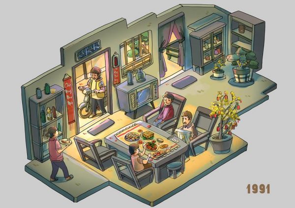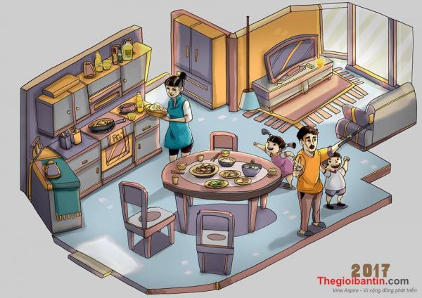 Bên cạnh những bữa ăn bình thường hằng ngày, bộ tranh còn đưa vào những hình ảnh về bữa cơm ngày Tết. Tường An đã vô cùng khéo léo khi sử dụng hình ảnh này vào thời điểm mà năm 2017 sắp kết thúc. Tết đã đến gần, cũng là lúc chúng ta nên quay về nhà.