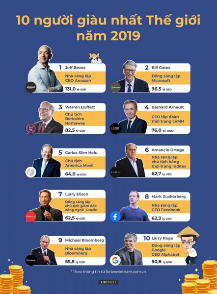 Trong năm vừa qua, nền kinh tế thế giới có nhiều thay đổi. Kết quả là bảng xếp hạng những nhân vật có nhiều tài sản nhất Thế giới có sự thay đổi. Gần một nửa trong số các tỷ phú không thể duy trì được khổi tổng tài sản như trong năm 2018.