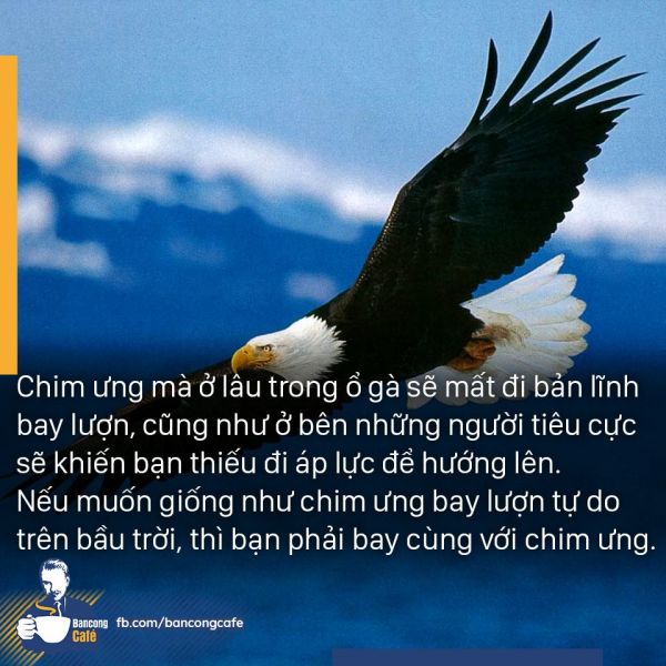 Chim ưng mà ở lâu trong ổ gà sẽ mất đi bản lĩnh bay lượn, cũng như ở bên những người tiêu cực sẽ khiến bạn thiếu đi áp lực để hướng lên. Nếu muốn giống như chim ưng bay lượn tự do trên bầu trời, thì bạn phải bay cùng với chim ưng.