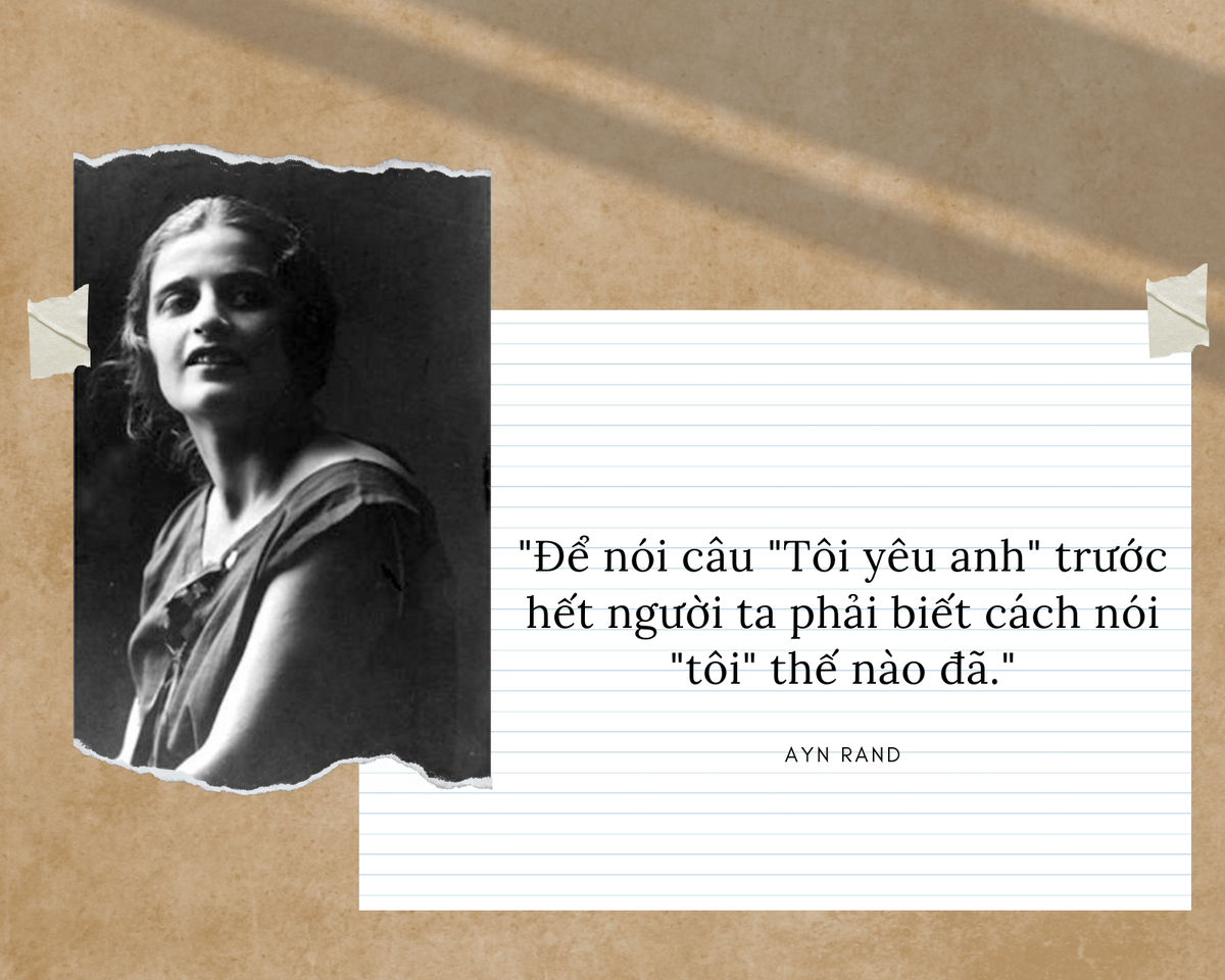 2. Ayn Rand: “Để nói câu “Tôi yêu anh” trước hết người ta phải biết cách nói “tôi” thế nào đã”. Tác giả của Suối nguồn cho rằng để yêu được người khác, họ phải yêu chính mình trước đã. Cuộc hôn nhân cũng như tình trường phức tạp của Ayn Rand càng cho thấy rõ ràng quan điểm ấy. Ayn có một người tình trẻ nhưng bất chấp điều đó, bà vẫn muốn chồng chịu đựng cuộc hôn nhân này.