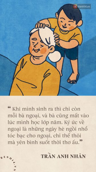 Nếu như mẹ có lúc nghiêm khắc, có lúc bao dung, thì bà lại luôn gắn với hình tượng bà tiên với mái tóc bạc phơ, da điểm đồi mồi, miệng cười móm mém và vô cùng hiền từ. Tuổi thơ ai mà chưa từng trải qua cảnh trốn sau lưng bà mỗi lần bị mẹ mắng, hay cảnh cuộn tròn trên chân bà, được bà vừa phe phẩy chiếc quạt mo cau, vừa kể truyện cổ tích cho nghe. Êm đềm, bình yên mà ấm áp, đó chính là cách bà yêu thương chúng ta.