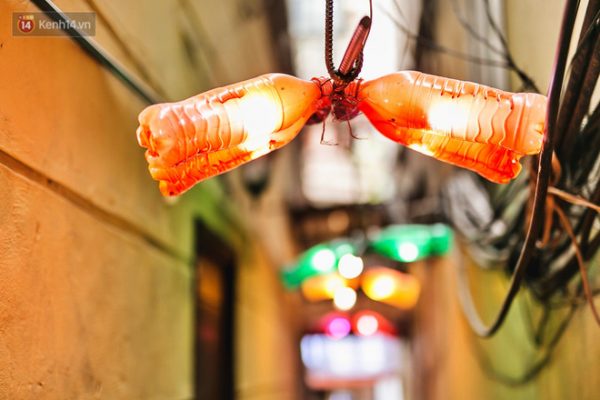Những vỏ chai nhựa được tận dụng để kết thành trần tầng 4 của quán.