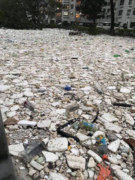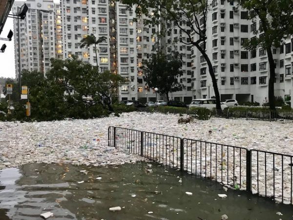 Sau khi bão Mangkhut đi qua, vùng Heng Fa Chuen Hồng Kông chỉ còn lại một mớ hỗn độn, nhưng một cảnh tượng gây sốc là xuất hiện vô số mảng rác thải trôi nổi trên mặt nước, một vùng từng tự hào về vẻ đẹp lộng lẫy bỗng chốc trở thành một bãi rác lớn!