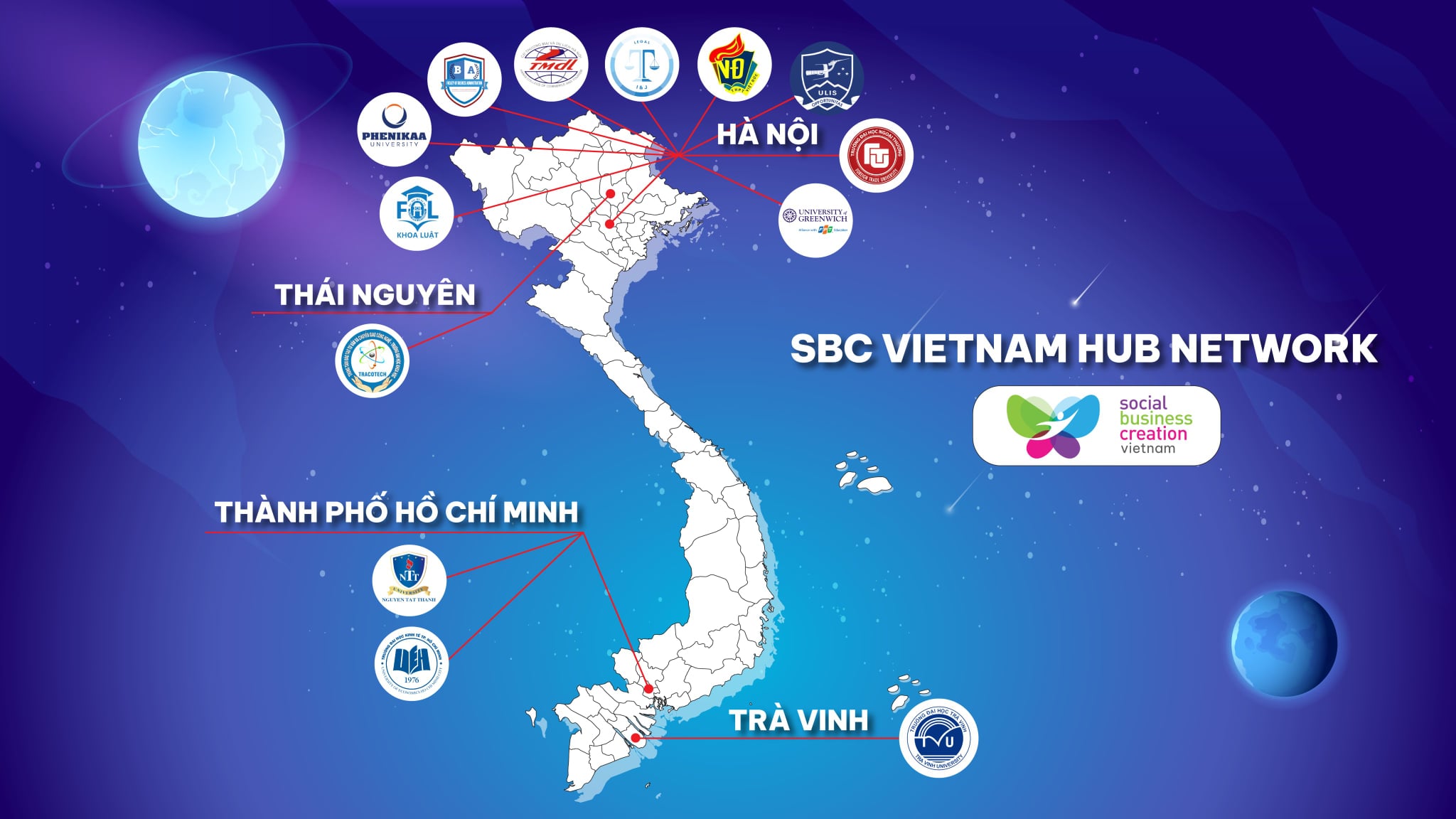 (Trong ngày Kickoff, SBC Vietnam Hub đã chính thức công bố 11 trường đại học từ khắp 3 miền Bắc Trung Nam đã chính thức tham gia mạng lưới SBC Hub để đồng hành với Trường ĐH Ngoại Thương nhằm lan tỏa sứ mệnh SBC)