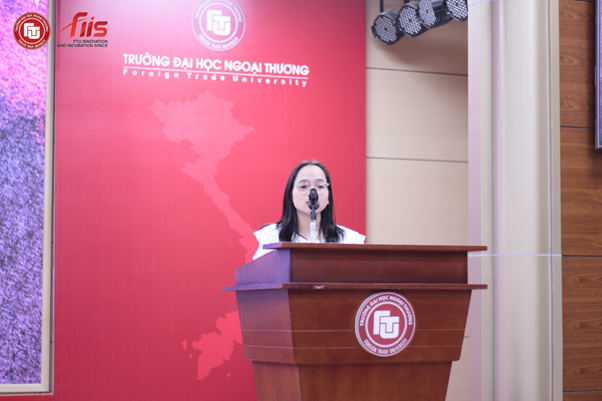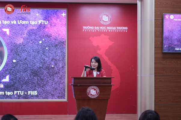 (PGS, TS Lê Thị Thu Hà – Giám đốc Trung tâm Sáng tạo và Ươm tạo FTU – FIIS) chia sẻ định hướng phát triển cộng đồng CMC ở quy mô toàn quốc và quốc tế)