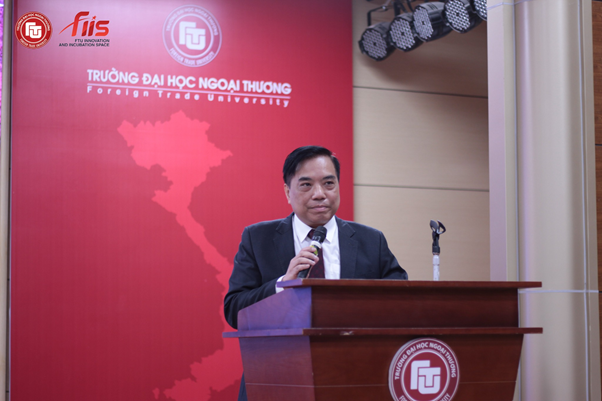 (Hiệu trưởng trường Đại học Ngoại thương – PGS. TS Bùi Anh Tuấn phát biểu tại lễ ra mắt CMC)