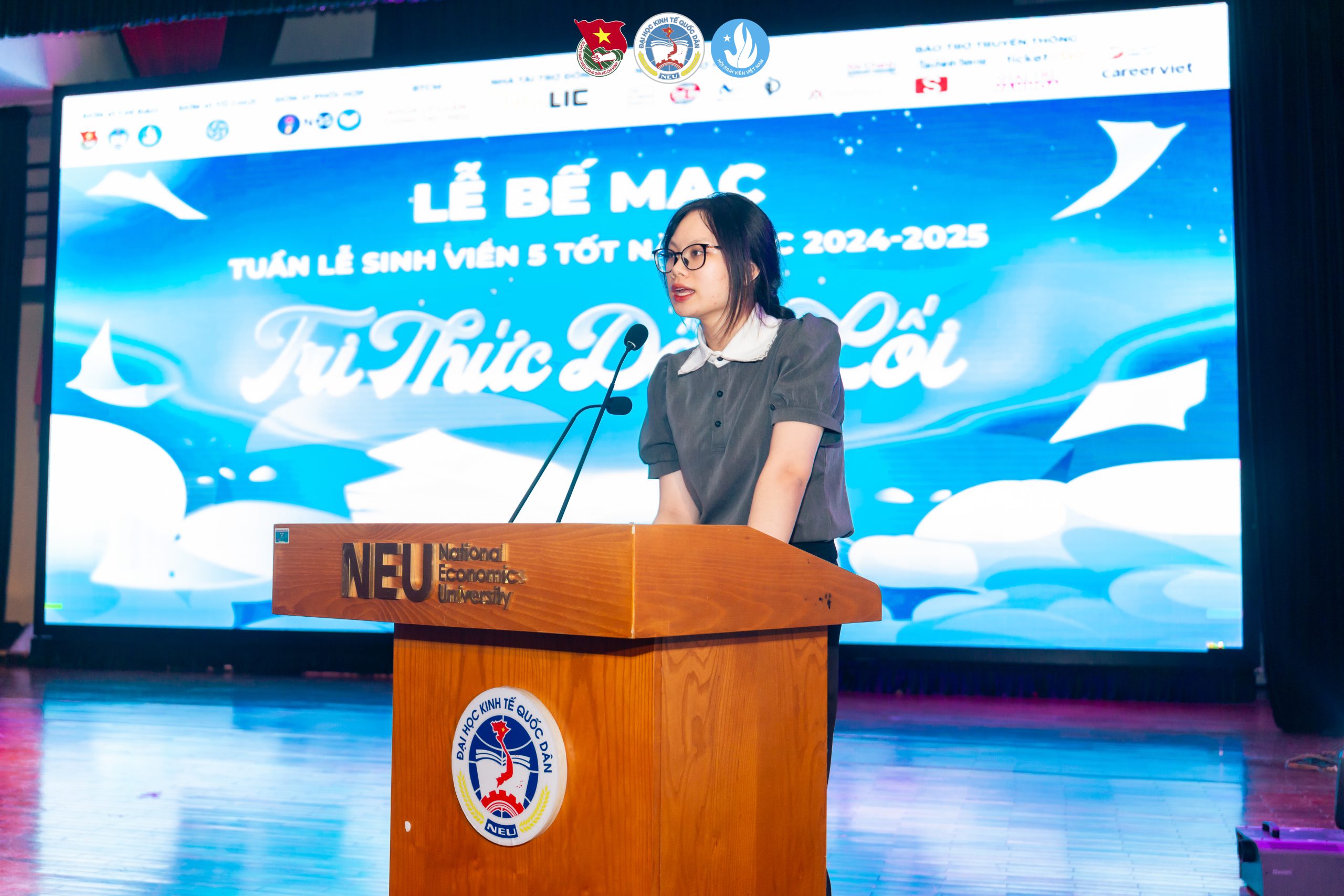 💖 CÅ©ng trong tối hôm đó, Ban Phong trà o Sinh viên 5 tốt đã tổ chức thà nh công Lá»… Bế mạc Tuần lá»… Sinh viên 5 tốt năm há»c 2024 – 2025 vá»›i chá»§ đỠ“Tri thức dẫn lốiâ€. Buổi lá»… đã khép lại chuá»—i chương trình, sá»± kiện ý nghÄ©a, để lại nhiá»u dấu ấn tốt đẹp và mang lại giá trị tÃch cá»±c cho sinh viên Äại há»c Kinh tế Quốc dân. Bên cạnh đó, sá»± kiện vô cùng vinh dá»± khi được đón tiếp những vị khách quý, Ban Giám khảo dà y dặn kinh nghiệm, đầy tâm huyết và các quý đơn vị đồng hà nh.