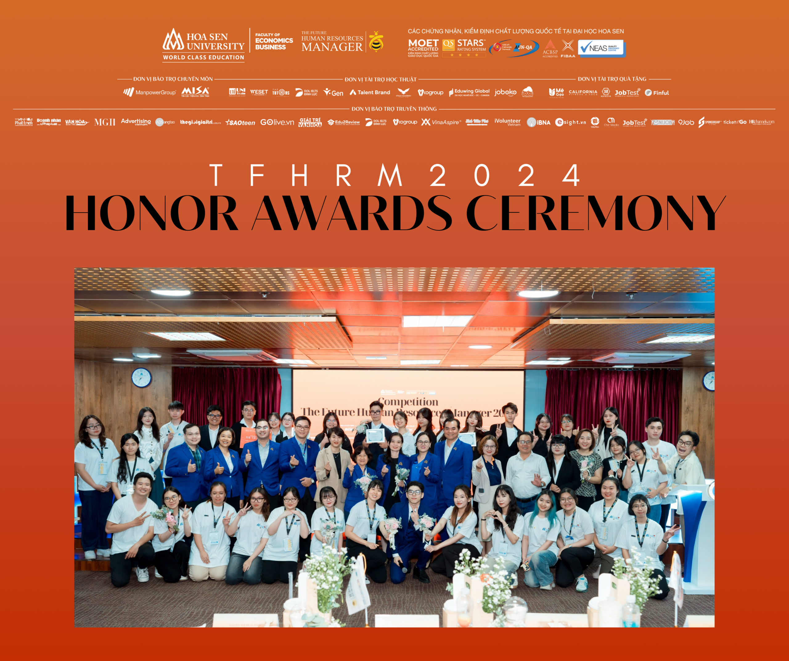 Qua đó, để ghi nhận những nỗ lực, cố gắng của sinh viên trong suốt hành trình tham gia Cuộc thi, sự kiện TFHRM 2024’s Honor Awards Ceremony đã diễn ra thành công với 1 giải nhất, 1 giải nhì, 1 giải ba, 3 giải khuyến khích và các giải thưởng phụ khác dành cho cá nhân. Đồng thời, sự hiện diện và tài trợ quý giá từ phía các Đơn vị đối tác đã mang đến cho các bạn sinh viên nhiều trải nghiệm tốt đẹp.