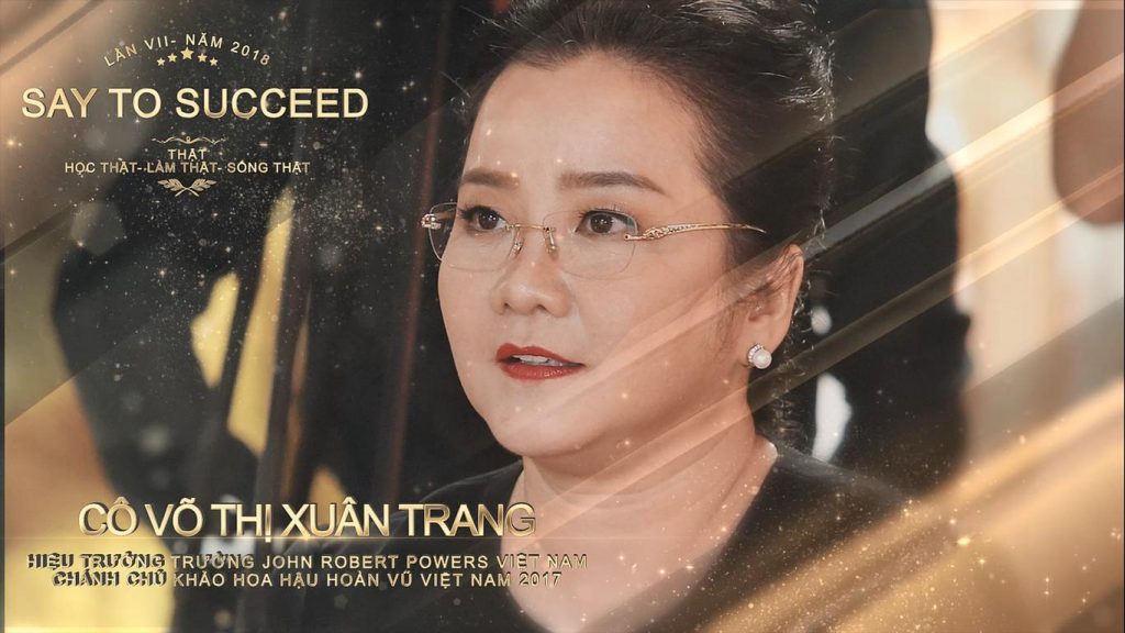 Cô Võ Thị Xuân Trang – Hiệu trưởng Trường John Robert Powers Việt Nam, đồng thời cô cũng là Trưởng ban giám khảo Hoa hậu Hoàn Vũ Việt Nam năm 2017 .
