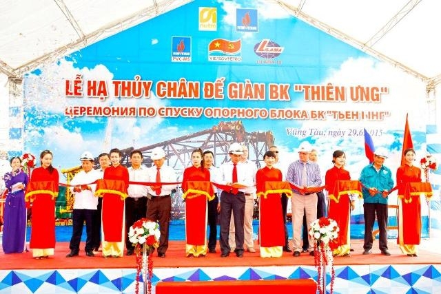 Chiều 29/6, tại bãi lắp ráp của Xí nghiệp Xây lắp, LD Việt – Nga Vietsovpetro đã long trọng tổ chức “Lễ hạ thủy chân đế giàn BK Thiên Ưng, Lô 04-3”.