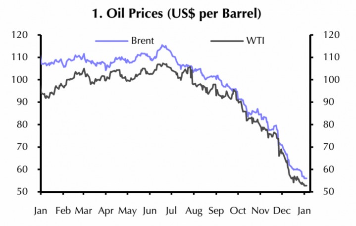 Khi giá dầu xuống 50 USD/thùng, nó đã tạo ra nhiều hiệu ứng. Đồng Rúp Nga đã giảm mạnh và quốc gia này đang lâm vào khủng hoảng kinh tế. Venezuela cũng đang trong tình trạng khủng hoảng kinh tế và chính trị, và việc giá cả sụt giảm có thể sẽ khiến khu vực Eurozone rơi vào tình trạng giảm phát. Ở chiều hướng ngược lại, hầu hết các nền kinh tế phát triển trên thế giới sẽ có tăng trưởng nhẹ trong năm nay và giá xăng giảm sẽ thúc đẩy tiêu dùng. Các doanh nghiệp có khả năng sẽ gia tăng lợi nhuận khi chi phí vận chuyển cũng giảm