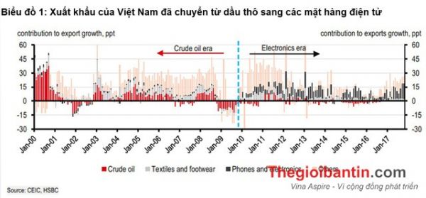 Theo nhận định của HSBC, một kỷ nguyên tăng trưởng của Việt Nam được thúc đẩy bởi dầu mỏ đã chấm dứt. Việc sản xuất dầu mỏ của Việt Nam đạt đỉnh vào năm 2000 và tiếp tục là yếu tố thúc đẩy tăng trưởng từ năm 2000 đến năm 2010 (cùng với sản xuất dệt may, giày dép và nông nghiệp).