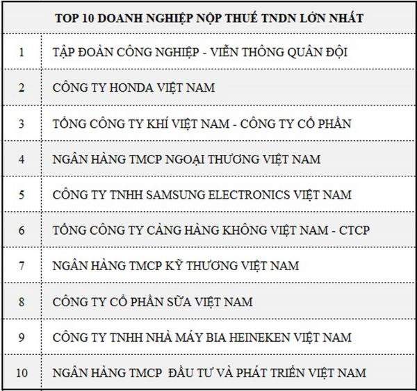 Top 10 doanh nghiệp nộp thuế lớn nhất Việt Nam năm 2018.
