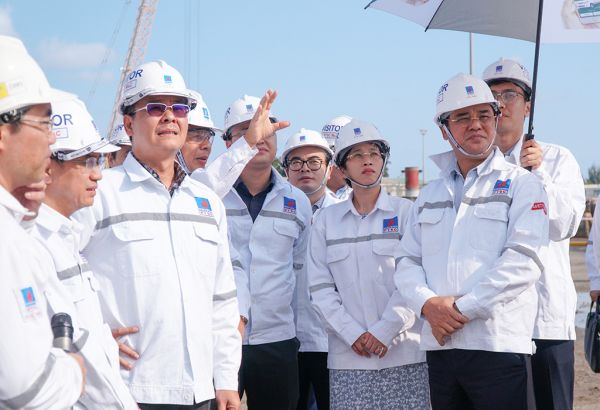 Trước khi làm việc cùng ban lãnh đạo của PTSC, Phó Chủ tịch Nguyễn Thị Phú Hà cùng đoàn công tác đã dành thời gian thị sát dây chuyền sản xuất và thăm hỏi, động viên người lao động của PTSC.